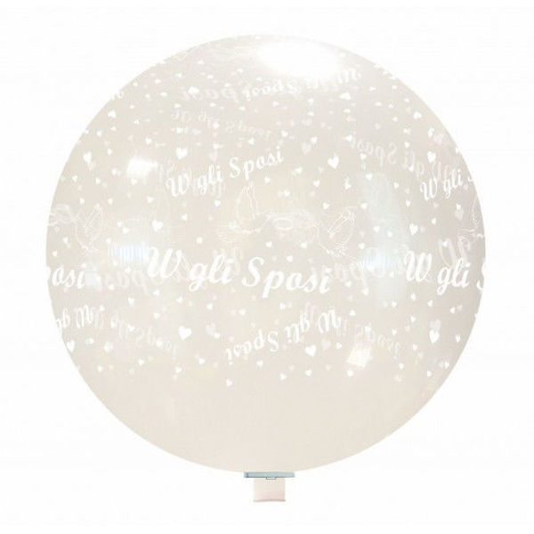 Palloncino in Lattice Trasparente con Stampa Sposi per Mongolfiere 32″ 81 cm