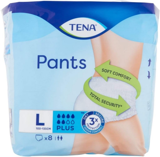 Confezione da 8 Mutandine Assorbenti Taglia L/XL, misura fianchi da 95 cm a 130 cm.